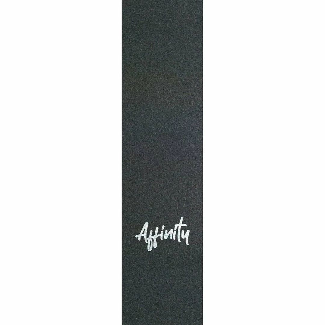 - Affinity makes some of the best bars in the business. What you may not know is that they also make some of the best grip tape in the business, too. Available in 6×24 sheets of standard grit, Affinity griptape comes in two great color ways: Script or Outline. Affinity Script Griptape is 6″ wide by 24″ long and fits a wide variety of PRO SCOOTER DECKS but may need to be cut to fit your exact deck. Whether you ride park or street, Affinity made Affinity Scooter Grip Tape just for you. The standard grit of the Affinity Grip Tape provides the perfect amount of grip for the street and sufficient grip for beginner to intermediate park riders. Pro riders may want to up the game with heavy duty grit. Affinity Scooter Griptape is an affordable way to trick up your pro scooter and make it stand out from the crowd at the skate park.