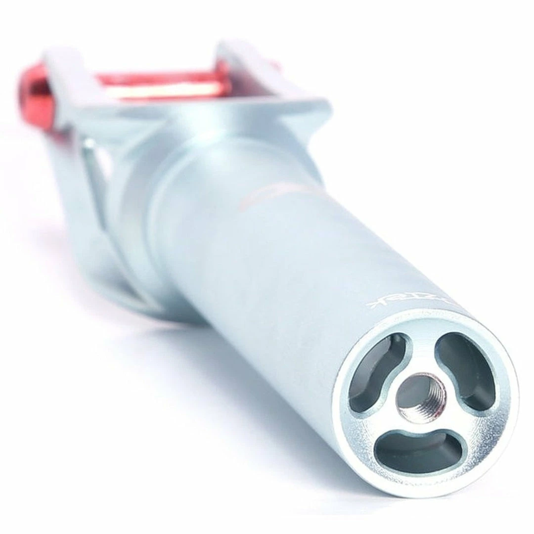 SCS compression utilizes an SCS compression system in place of a clamp. Ensure that your bar diameter (standard or oversized) is compatible with the diameter of your SCS compression system and that your bars DO NOT HAVE A SLIT. Most SCS compression systems come with a shim, which will be compatible with either bar size. When you remove the shim, the SCS is compatible with oversized bars; when you leave the shim in, it is compatible with standard bars. SCS compression is the most effective type of compression, as it compresses the bars and forks independently.