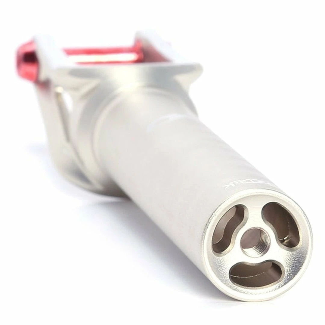 HIC compression utilizes an HIC compression system that screws into the top of your forks. With the HIC compression system installed on the forks, you will need bars with a slit and an oversized inner diameter. HIC bars require steel or titanium bars with an oversized inner diameter. Steel bars with a standard inner diameter and aluminum bars, which have an oversized outer diameter but standard inner diameter, will NOT work with HIC compression. HIC compression will also require the use of an oversized clamp, which compresses the bars around the HIC compression system and fork.
