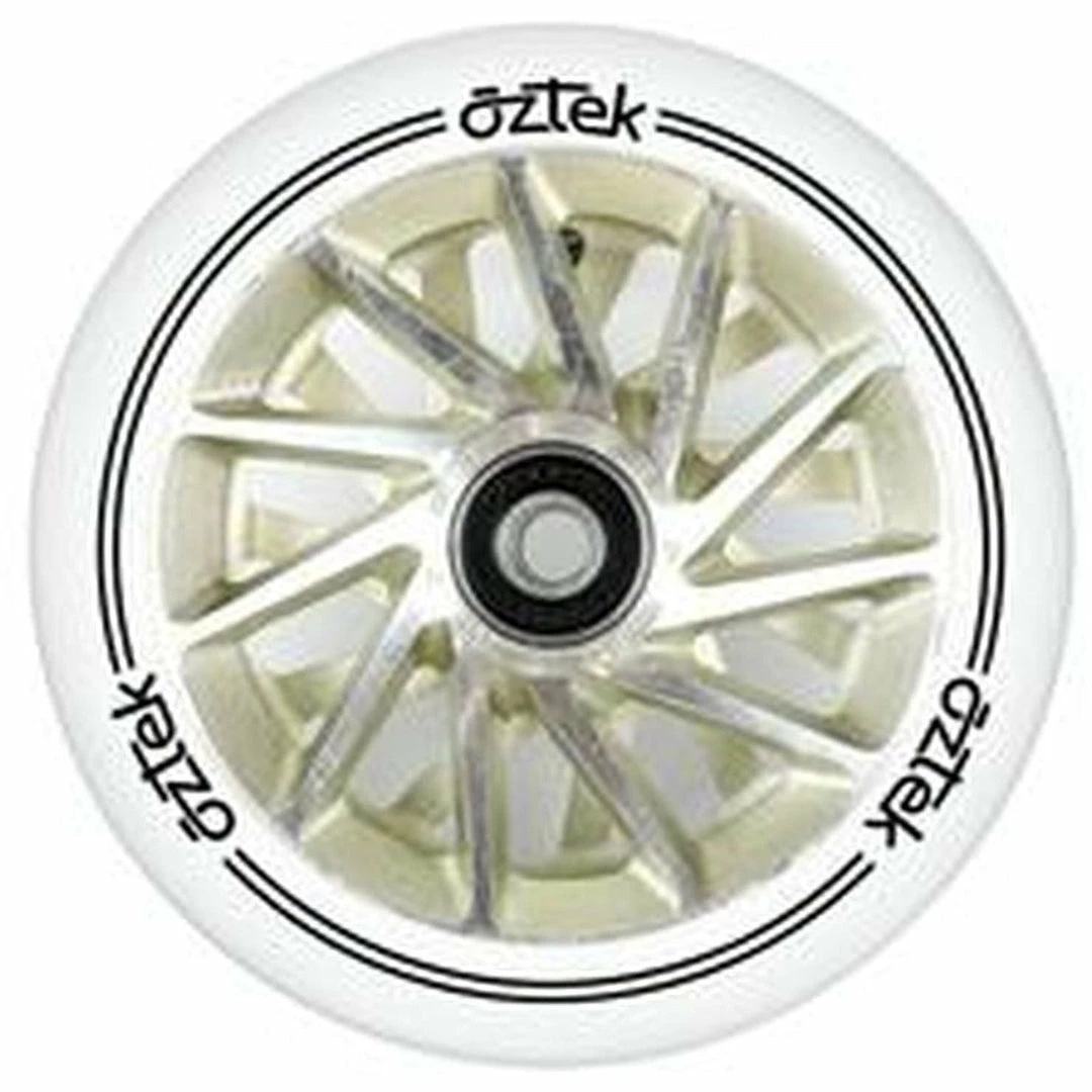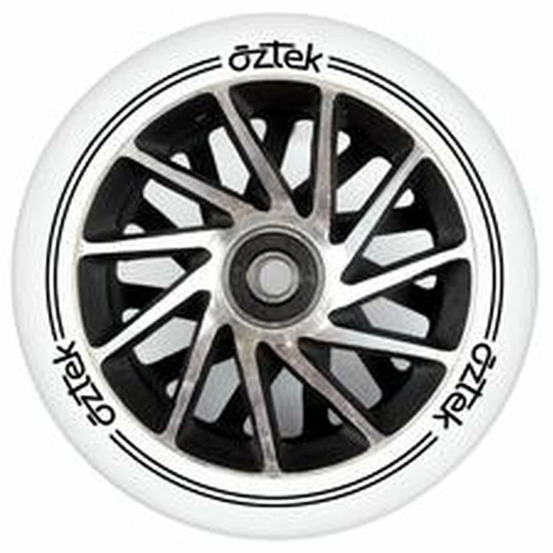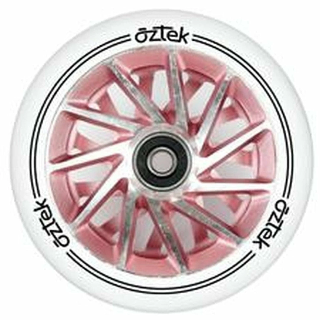 Aztek Ermine Wheels are 88A PU, which means that Aztek intended them to be ridden on the street because they are harder and more durable than 86A wheels. Aztek Scooter Wheels are 24mm wide at the core and should be used with 24mm wheels spacers. The PU width is 24mm. Most PRO SCOOTER FORKS and decks were designed to handle a 24mm wheel core. Since both the core and PU of the Aztek Scooter Wheels are 24mm, every fork and deck we sell should be compatible with these wheels. Aztek Ermine Wheels have a 110mm outer diameter, making them perfect for the advanced beginner to intermediate riders. 110mm wheels have long been the standard diameter for most intermediate pro scooters. However, as scooter wheels become wider and taller due to pro riders need for big trick speed, 110mm wheels are becoming the norm for beginner to intermediate scooter riders. Aztek Ermine Wheels 110mm come standard with pre-installed bearings.