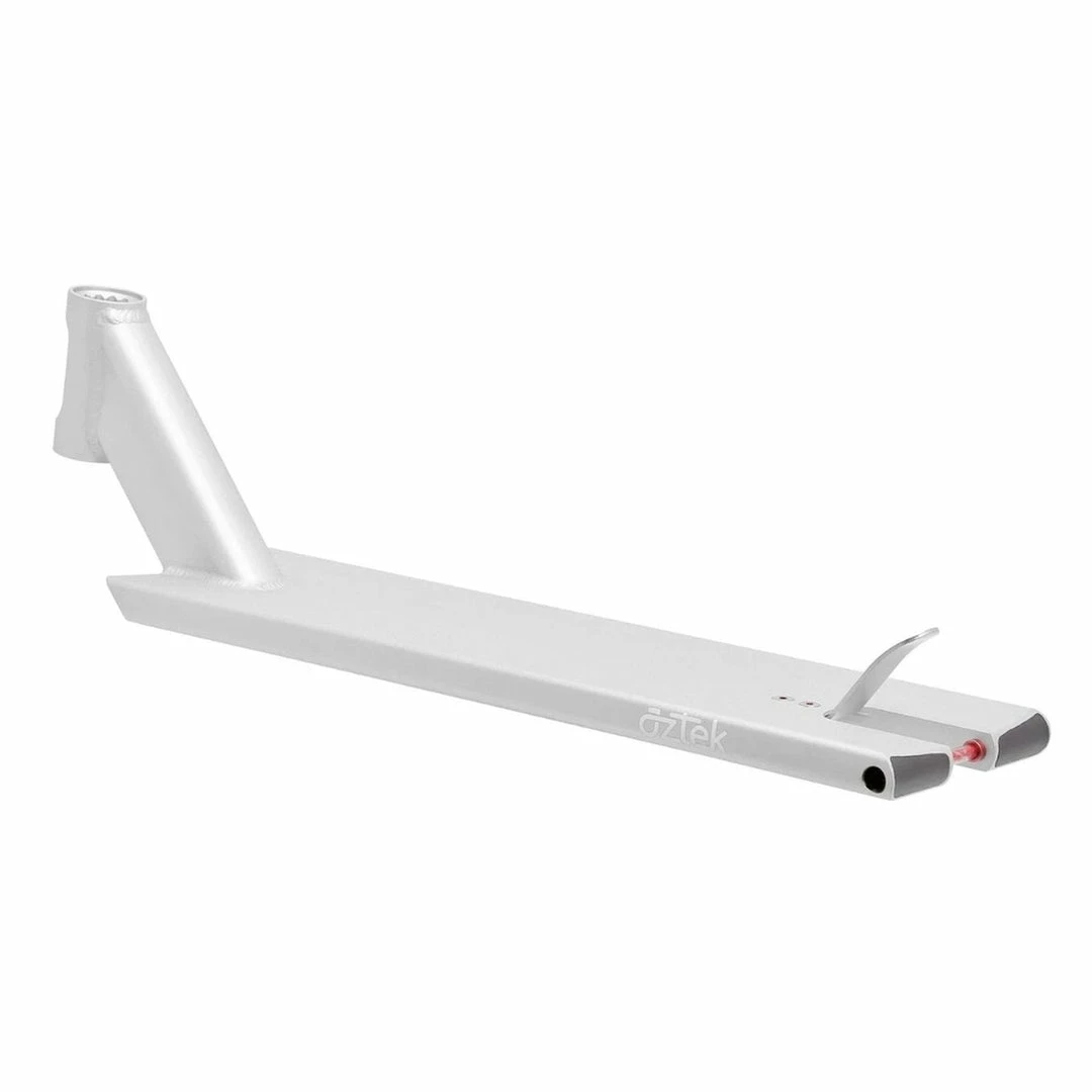 The Aztek Siren Deck is 5.5″ or 6″ wide by 22″ or 23″ long, with an 84 degree headtube angle. Headtube angle affects a couple of things. The steep rake of the Aztek Deck makes it perfect for those riders who have mastered the single tail whip and are moving onto multiple whips. The steeper the headtube angle, the more the Siren Deck whips around a flat plane with less resistance. Because the deck has boxed ends, we consider the Aztek Scooter Deck to be a street deck but it’s equally at home at the skatepark or in your hood. PRO SCOOTER DECKS that are 23+” long will be ideal for intermediate to pro riders that have been in the sport for a while or for those scooter riders that need a little more footspace. The Aztek Siren 3 Deck works with the following wheel diameters: 100mm,110mm,115mm,120mm and the following wheel widths: 24mm,26mm,28mm,30mm. Note that decks typically come standard with 24mm spacers. If you change the wheel core width, you will also need to change your spacers to accomodate the new wheel core width.