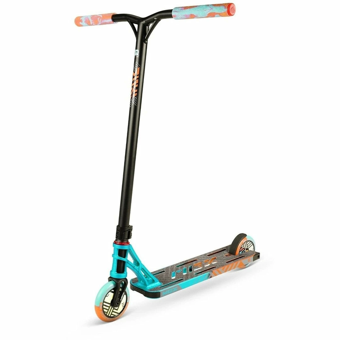 When you’re looking at the Madd Gear MGX T2 Team pro scooter, you’ve made it to the top of MGP’s pro scooter lineup. With a much larger deck and taller/wider bars than its little brothers, the S1 and P1, the MGX T2 is aimed directly at the intermediate to advanced intermediate rider. The MGX T2 boasts the brand new X headtube, which we think is a massive step up in terms of both function and looks, as well as 120mm holographic hollow core wheels so you can ramp up massive speed for your best park tricks. Available in Lush, Stealth, and Playa, the MGX T2 is on fire!