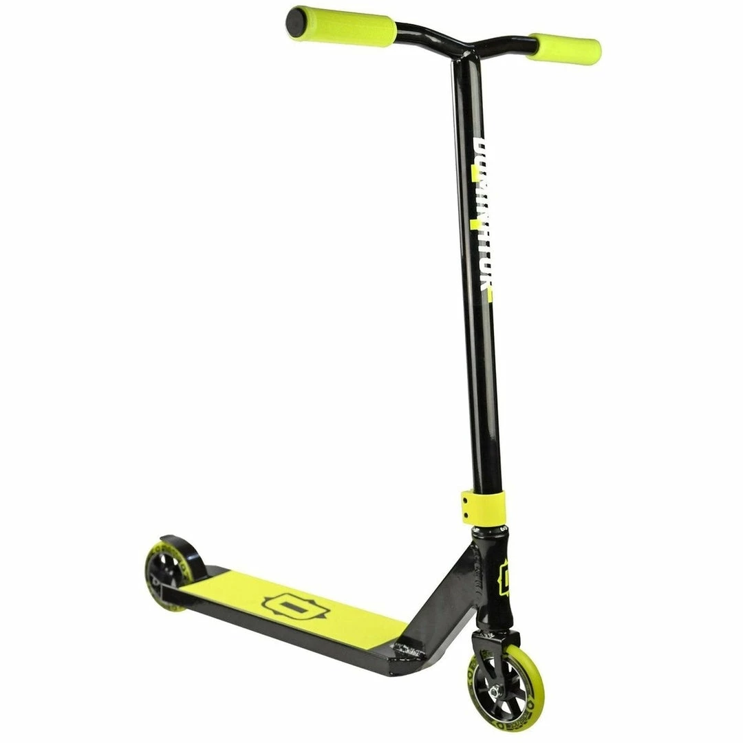 Almost every kid starts out on a Razor. And we never understood that because the Dominator Sniper is just $129 and towers over the Razor in terms of value. The Sniper comes standard with an integrated headset, not the threaded headset found on the Razor scooter. It comes with 110mm wheels, mini IHC compression, a triple clamp, and a decently sized deck and bars that will fit a wide variety of riders. Interestingly enough, the bars on the Sniper are an inch taller than its big brother, the Airborne, which probably makes the Sniper a little too tall for the youngest riders but should be appropriate for most 7 – 10 year olds.