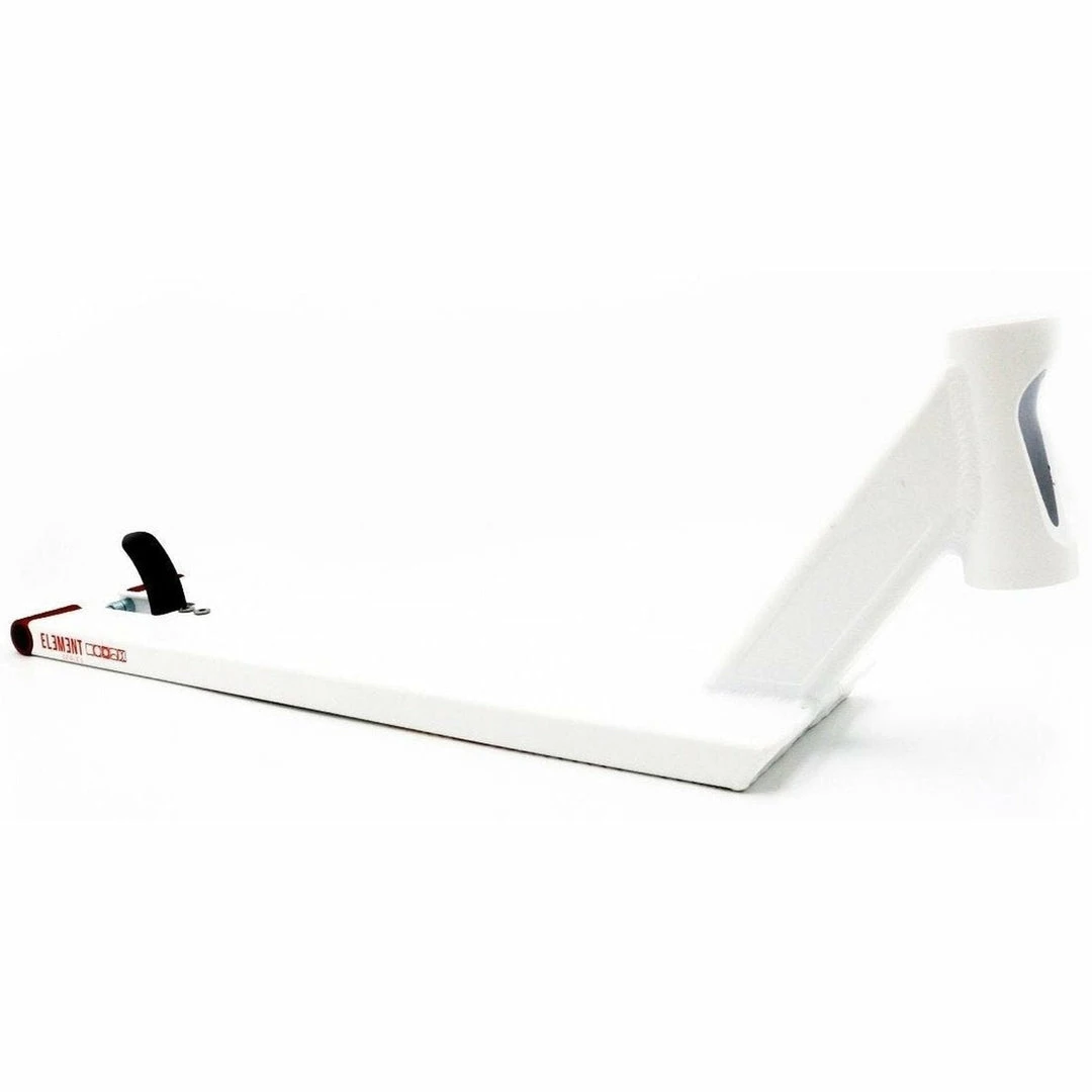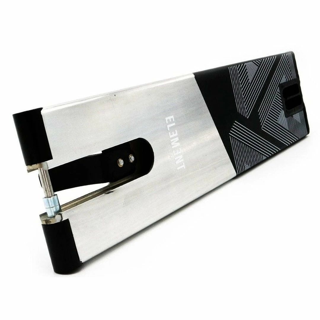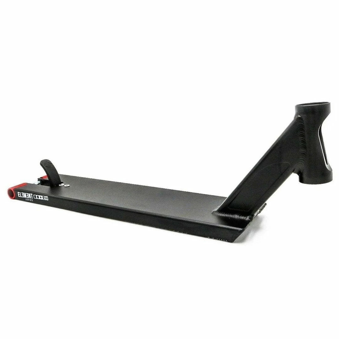 The Drone Element Deck is 5.5″ wide by 20.9″ or 22″ long, with an 83.5 degree headtube angle. Headtube angle affects a couple of things. The steep rake of the Drone Deck makes it perfect for those riders who have mastered the single tail whip and are moving onto multiple whips. The steeper the headtube angle, the more the Element Deck whips around a flat plane with less resistance. Because the deck has boxed ends, we consider the Drone Scooter Deck to be a street deck but it’s equally at home at the skatepark or in your hood. PRO SCOOTER DECKS that are 22-22.99″ long will be ideal for intermediate to pro riders that have been in the sport for a while or for those scooter riders that need a little more footspace. The Drone Element Scooter Deck works with the following wheel diameters: 100mm,110mm,115mm,120mm and the following wheel widths: 24mm,26mm,28mm,30mm. Note that decks typically come standard with 24mm spacers. If you change the wheel core width, you will also need to change your spacers to accomodate the new wheel core width.