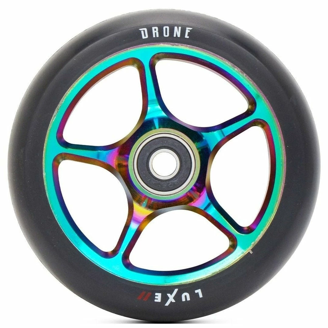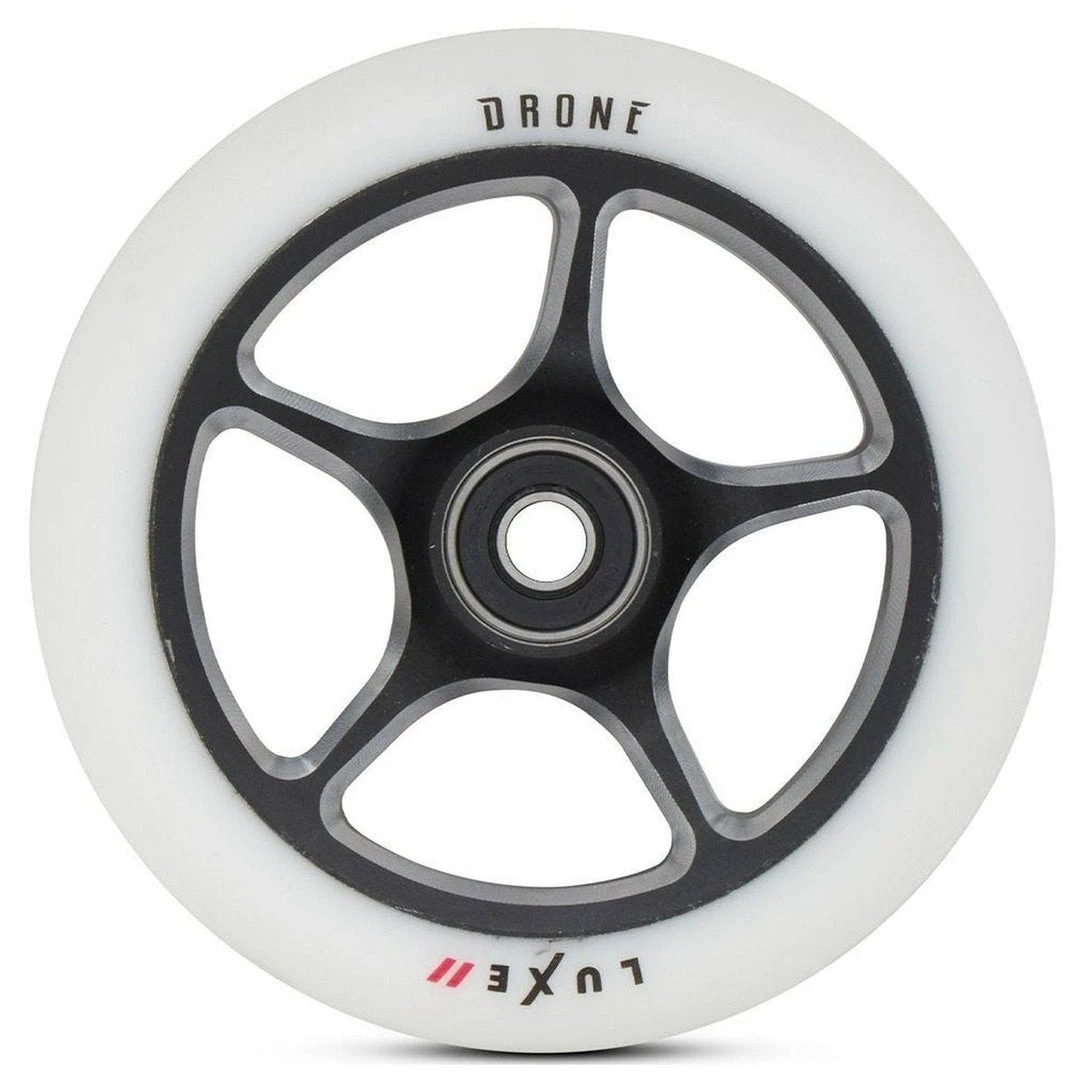 If you are looking for a lightweight, clean 5 spoke wheel, look not further than the Drone Luxe II wheels. With a two-tone core (black & white), the Luxe II wheels look the part while providing durability for street riding.