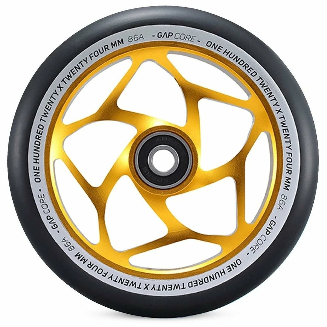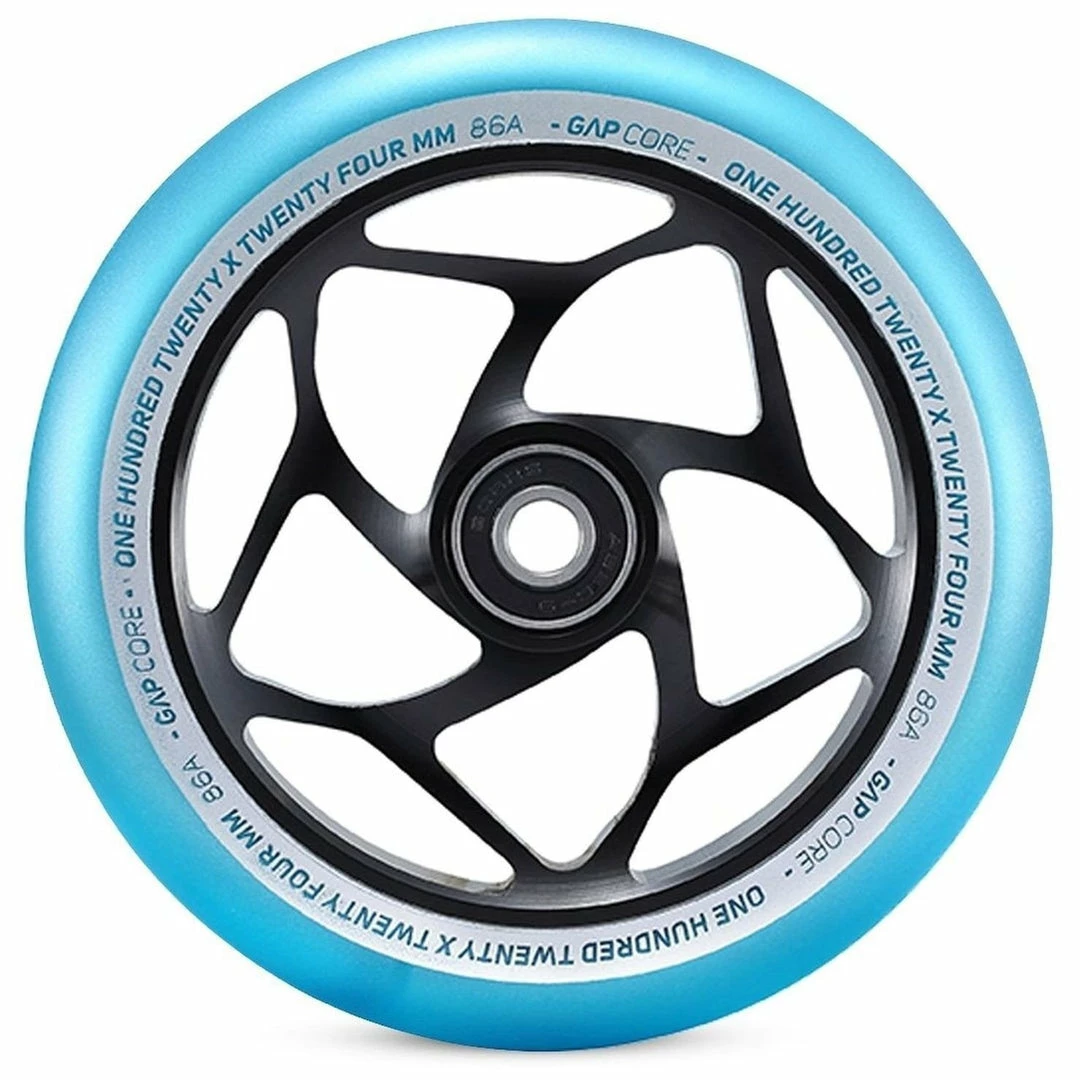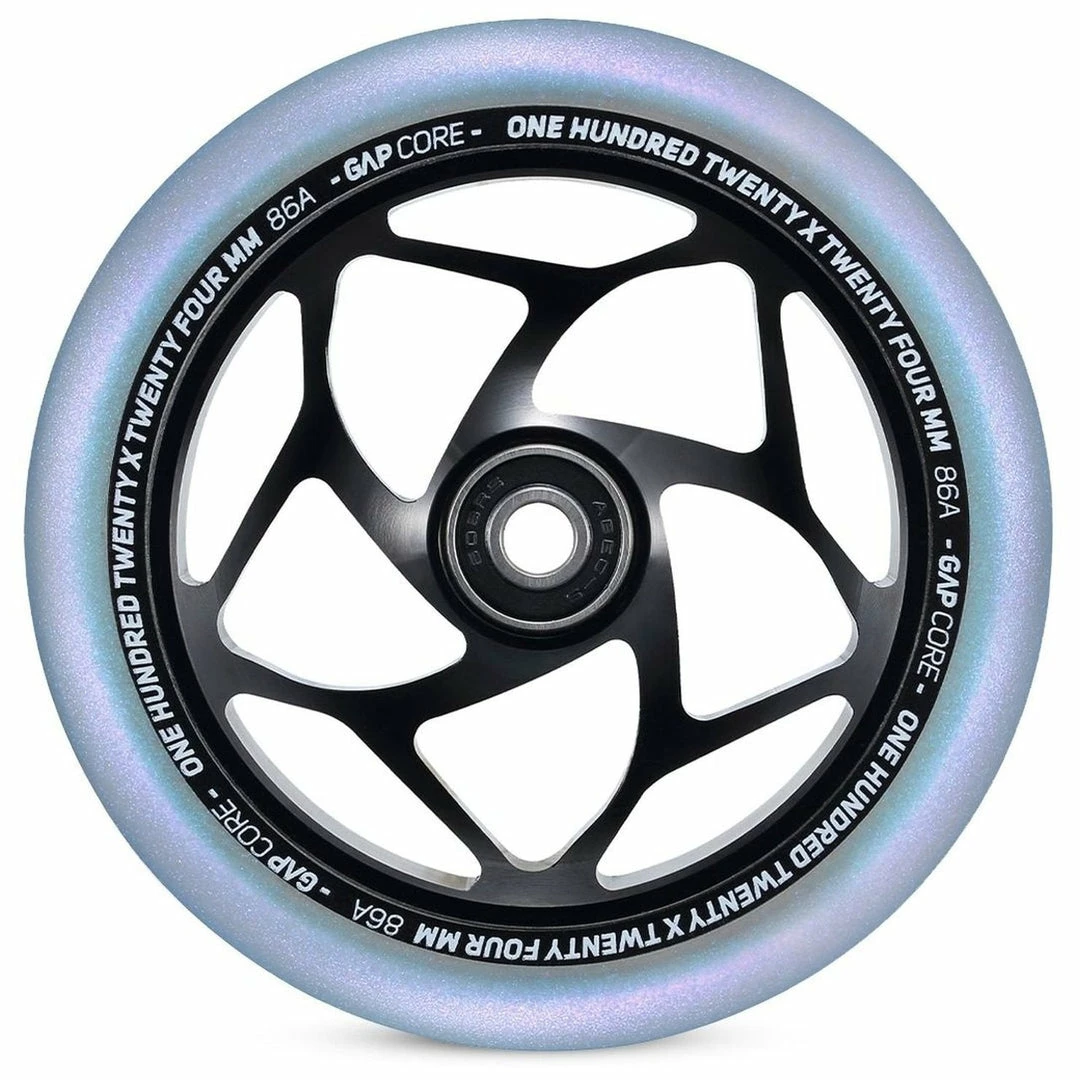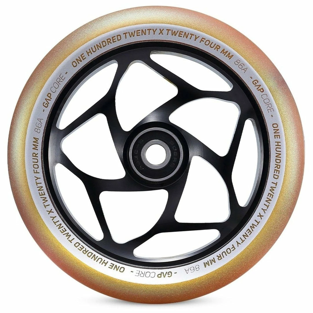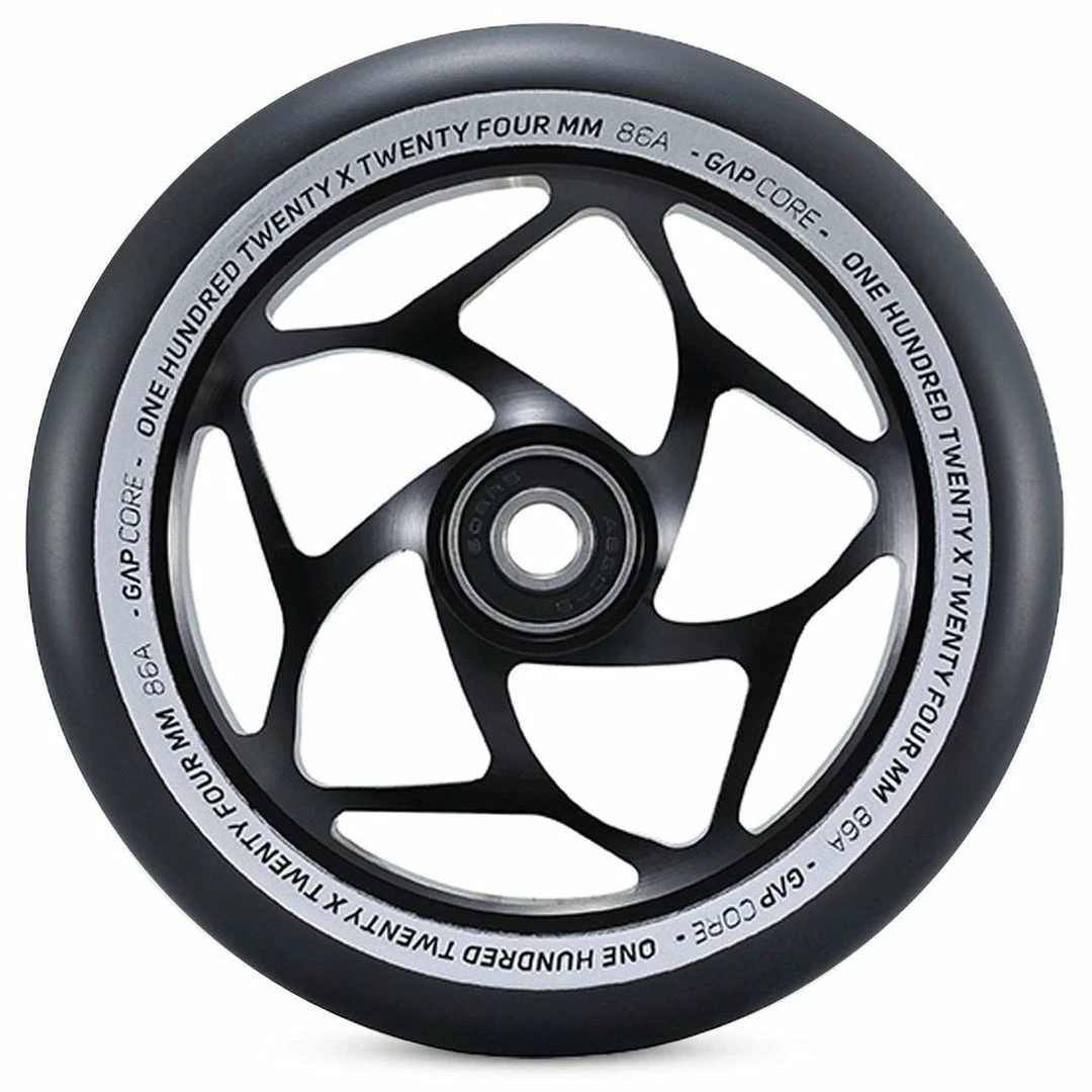 Envy Gap Core Wheels are 86A PU, which means that Envy intended them to be ridden at the park because they are softer and provide more grip than 88A wheels. Envy Scooter Wheels are 24mm wide at the core and should be used with 24mm wheels spacers. The PU width is 24mm. Most PRO SCOOTER FORKS and decks were designed to handle a 24mm wheel core. Since both the core and PU of the Envy Scooter Wheels are 24mm, every fork and deck we sell should be compatible with these wheels. Envy Gap Core Wheels have a 120mm outer diameter, making them perfect for the intermediate to pro riders who are looking for maximum speed for big air park tricks. While 115mm and 125mm are only produced by a few scooter manufacturers, 120mm wheels are the norm now on any intermediate to pro freestyle scooter. Envy Gap Core Wheels 120mm come standard with pre-installed bearings.