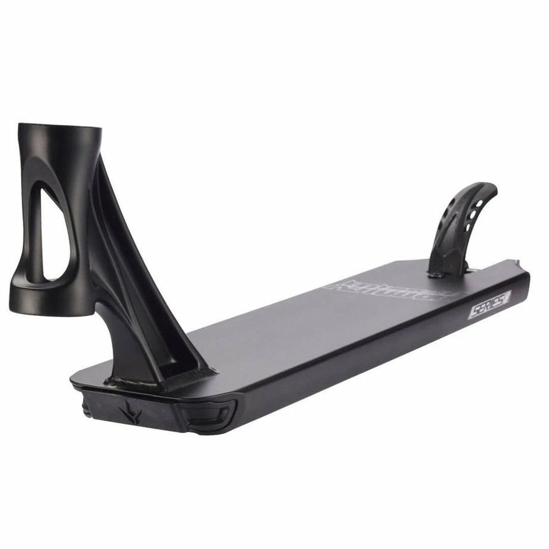 The Envy Prodigy Deck is 4.5″ wide by 19.5″ long, with an 82.5 degree headtube angle. Headtube angle affects a couple of things. The longer rake of the Envy Deck makes it perfect for those riders who want more stability and precise steering due to the longer rake of the headtube. Because the deck does not have boxed ends, we consider the Envy Scooter Deck to be a park deck but it’s equally at home at the skatepark or in your hood. PRO SCOOTER DECKS that are 19-19.99″ long will be ideal for intermediate to pro riders that have been in the sport for a while or for those scooter riders that need a little more footspace. The Envy Prodigy S8 Deck works with the following wheel diameters: 100mm,110mm,115mm,120mm and the following wheel widths: 24mm,26mm,28mm,30mm. Note that decks typically come standard with 24mm spacers. If you change the wheel core width, you will also need to change your spacers to accomodate the new wheel core width.