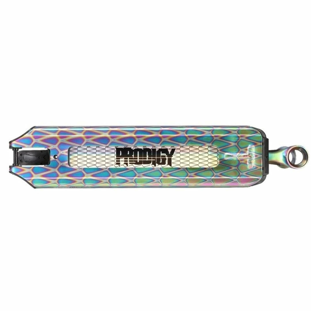 The Prodigy S9 Deck is straight out of the Prodigy S9 Complete, with a new Oil Slick colorway. Made from the highest grade 6061 T6 Aluminum and weighing only 3.2lbs. The Prodigy Deck comes in at 580mm (19.8″) long x 120mm (4.7″) wide. The ninth generation of the Prodigy deck features a Nylon Front Plate, Rear Deck Inserts, 2018 Rear Spacer System and the Nylon V1 Brake. This deck is the perfect base to build your custom pro scooter upon.