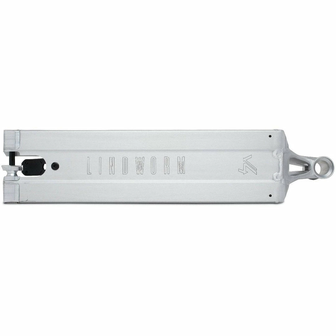 The Ethic Lindworm Deck is 5.9″ or 6.3″ wide by 21.3″, 22.8″, 22″, or 23.6″ long, with an 83.5 degree headtube angle. Headtube angle affects a couple of things. The steep rake of the Ethic Deck makes it perfect for those riders who have mastered the single tail whip and are moving onto multiple whips. The steeper the headtube angle, the more the Lindworm Deck whips around a flat plane with less resistance. Because the deck has boxed ends, we consider the Ethic Scooter Deck to be a street deck but it’s equally at home at the skatepark or in your hood. PRO SCOOTER DECKS that are 23+” long will be ideal for intermediate to pro riders that have been in the sport for a while or for those scooter riders that need a little more footspace. The Ethic Lindworm V4 Deck works with the following wheel diameters: 100mm,110mm,115mm,120mm,125mm and the following wheel widths: 24mm,26mm,28mm,30mm. Note that decks typically come standard with 24mm spacers. If you change the wheel core width, you will also need to change your spacers to accomodate the new wheel core width.