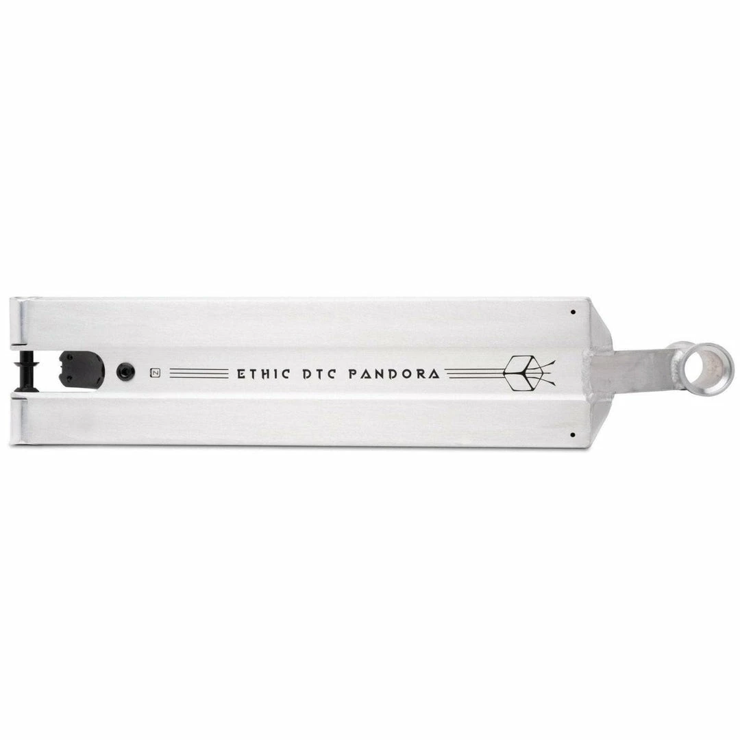 The Pandora deck is the street version of the Pandemonium deck. Ethic’s mission with the Pandora was to build a really strong and light deck for the street rider that won’t break the bank. The Pandemomium deck has been one of our best sellers for park riders so we fully expect that the Pandora variation will be just as popular with street riders. The Pandora deck comes out of the box with a 12 STD setup but DOES include an axle and spacers to run the conventional 8mm axle. One of the grips for a lot of riders with the Pandemonium deck was that it was only compatible with 110mm wheels. No more – the Pandora works with wheels up to 125mm.