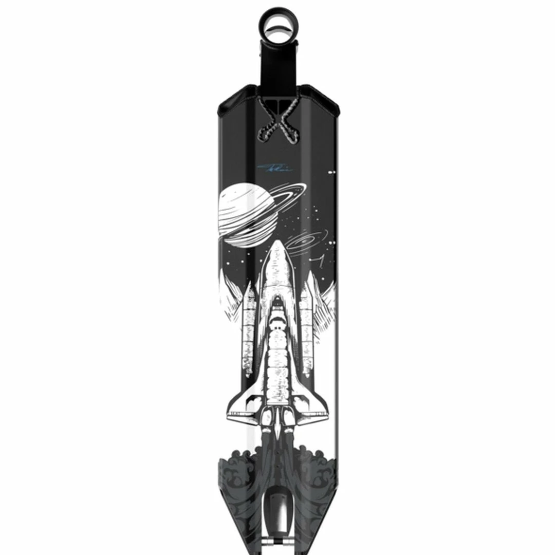 Tyler Chaffin has been riding pro for Fuzion for quite some time now and has sported a number of signature parts over the years. His all new sig deck features the all too familiar space man graphics – this time sports a cool black/white graphic with the space shuttle hurtling through space.