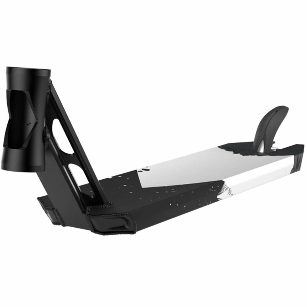 The Fuzion Entropy Deck is a pro scooter deck that Fuzion created for Tyler Chaffin, who rides pro in pro scooter competitions for Fuzion scooters. The Fuzion Entropy Deck is 5″ wide by 20.5″ long, with an 83 degree headtube angle. Headtube angle affects a couple of things. The steep rake of the Fuzion Deck makes it perfect for those riders who have mastered the single tail whip and are moving onto multiple whips. The steeper the headtube angle, the more the Entropy Deck whips around a flat plane with less resistance. Because the deck does not have boxed ends, we consider the Fuzion Scooter Deck to be a park deck but it’s equally at home at the skatepark or in your hood. PRO SCOOTER DECKS that are 20-20.99″ long will be ideal for intermediate to pro riders that have been in the sport for a while or for those scooter riders that need a little more footspace. The Fuzion Entropy Scooter Deck works with the following wheel diameters: 100mm,110mm,115mm,120mm and the following wheel widths: 24mm. Note that decks typically come standard with 24mm spacers. If you change the wheel core width, you will also need to change your spacers to accomodate the new wheel core width.