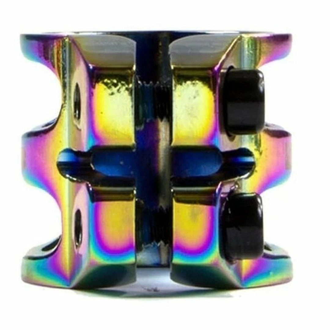 - Double clamps are very light weight and are the choice of most pro scooter riders who rider IHC or HIC compression. May require more frequent tightening than a triple or quad clamp.