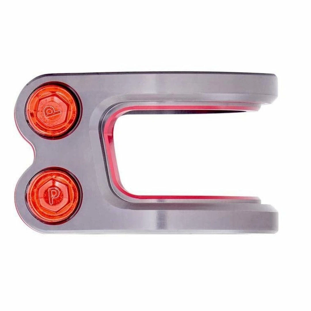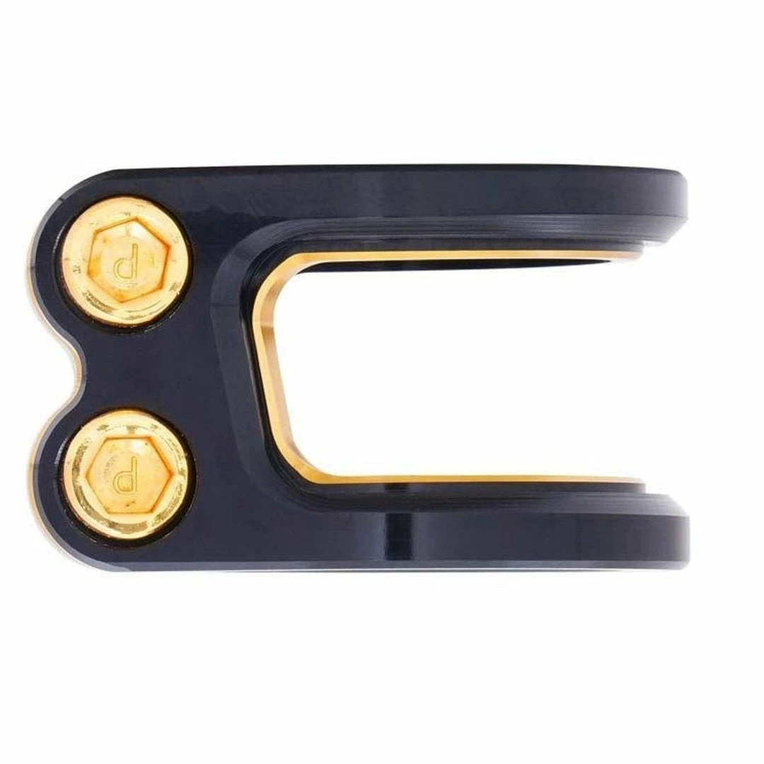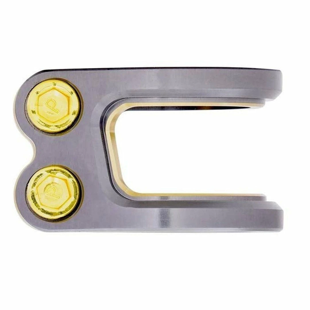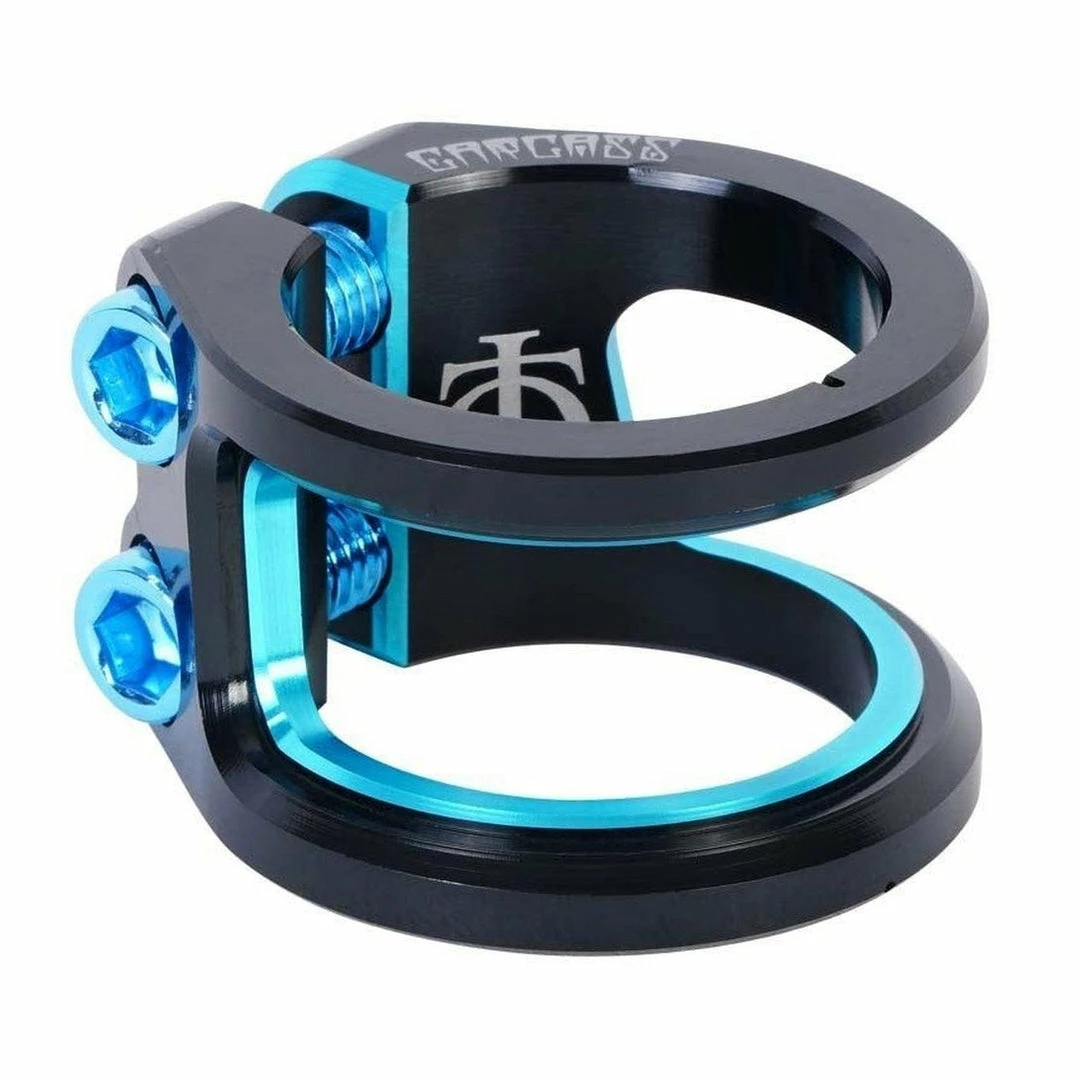- If light weight is your primary focus on your pro scooter, then look no further than the all new Oath Carcass double clamp. It looks fantastic and is one of the lightest double clamps on the market today. You may be concerned about clamping power since there isn’t much to this clamp but, fear not, the M8 bolts provide just as much clamping power as any other double clamp on the market. The Oath clamp is a double clamp. Double clamps are super light weight and the choice of most pro scooter riders, whether they ride street or park. Double clamps only have 2 bolts to compress your bars around your forks so, while they are effective, a triple or quad clamp will provide more clamping power and reduce the frequency with which you will have to tighten your clamp bolts. The Oath double clamp includes a shim and works with both oversized and standard outer diameter PRO SCOOTER BARS with a slit. The Oath scooter clamp includes M8 bolts for maximum clamping power. M8 bolts are much less likely to strip than M6 bolts. It is a good practice with any compression bolt to tighten each bolt 1/2 turn at a time, one bolt at a time, until all bolts are completely tight. The Oath Carcass Clamp works with the following types of compression: IHC,ICS,ICS10,HIC,TCS. If you are looking for a very light weight scooter clamp, the Oath Carcass 2 bolt clamp just might be the perfect clamp for you!