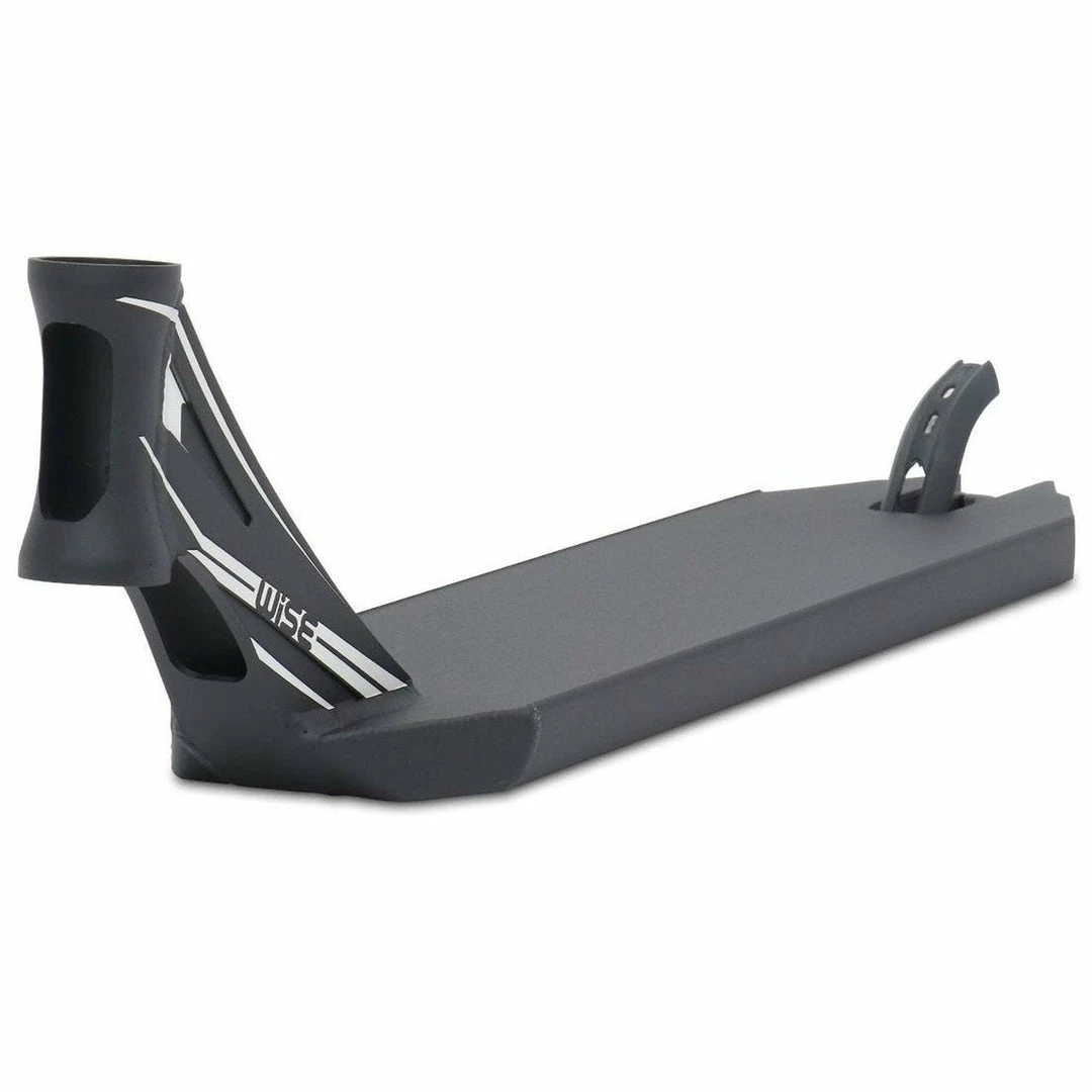 The Wise Alta Deck is 5.7″ wide by 22″ long, with an 83.5 degree headtube angle. Headtube angle affects a couple of things. The steep rake of the Wise Deck makes it perfect for those riders who have mastered the single tail whip and are moving onto multiple whips. The steeper the headtube angle, the more the Alta Deck whips around a flat plane with less resistance. Because the deck does not have boxed ends, we consider the Wise Scooter Deck to be a park deck but it’s equally at home at the skatepark or in your hood. PRO SCOOTER DECKS that are 22-22.99″ long will be ideal for intermediate to pro riders that have been in the sport for a while or for those scooter riders that need a little more footspace. The Wise Alta V2 Deck works with the following wheel diameters: 100mm,110mm,115mm,120mm,125mm and the following wheel widths: 24mm,26mm. Note that decks typically come standard with 24mm spacers. If you change the wheel core width, you will also need to change your spacers to accomodate the new wheel core width.