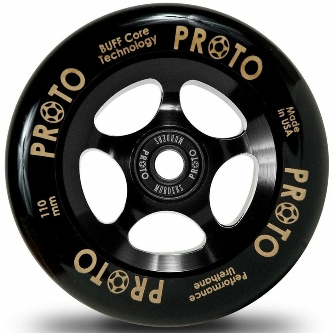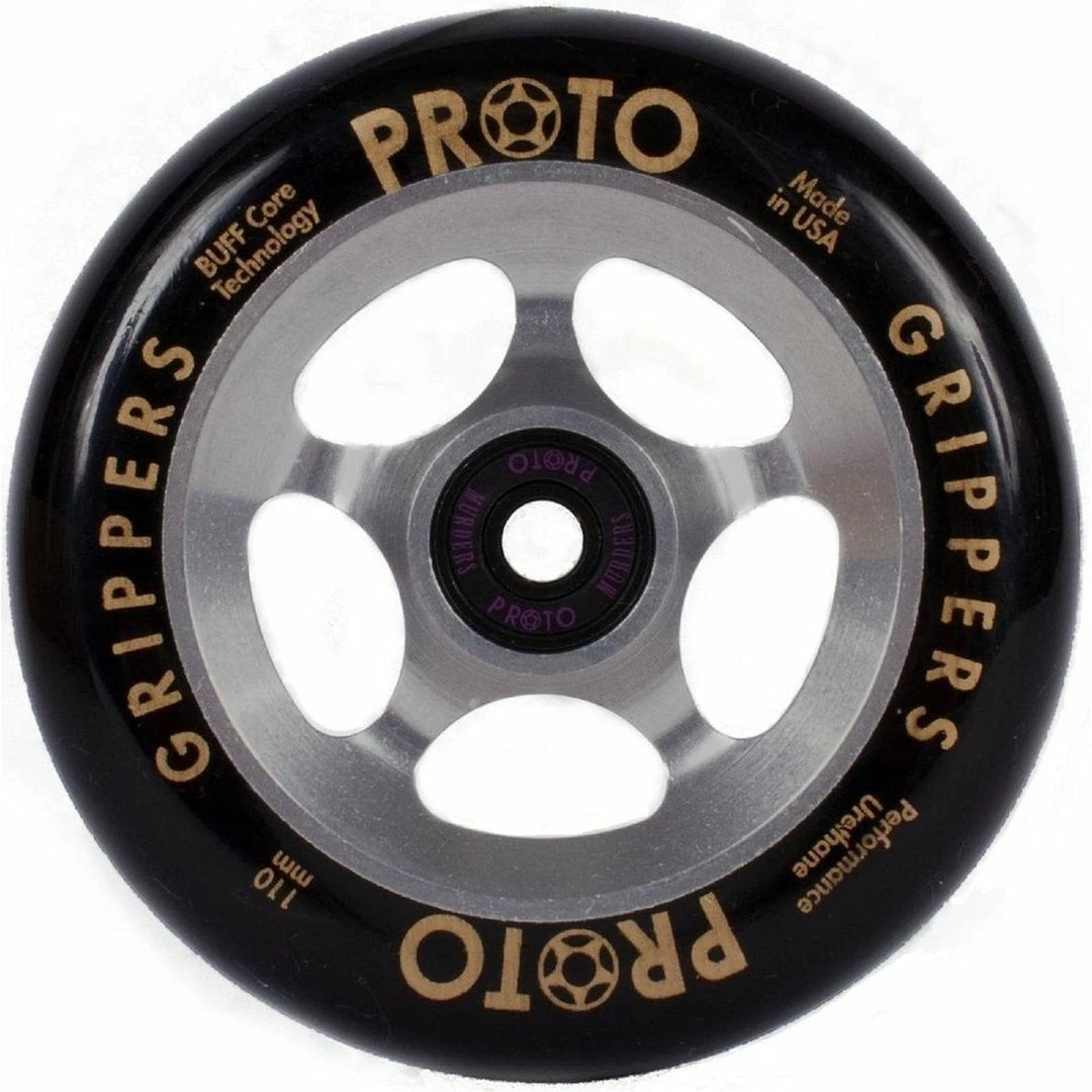 Gripper wheels are some of the fastest wheels on the market. PROTO Wheels are made in the USA and have an anodized core for durability. Featuring BUFF Core Technology to reduce dehubbing. All PROTO Scooter Wheels come with bearing removal slots for taking bearings out with ease. These wheels come with High Quality PROTO Murders Bearings pre installed. PROTO STICKERS INCLUDED. Limited 90-day warranty.