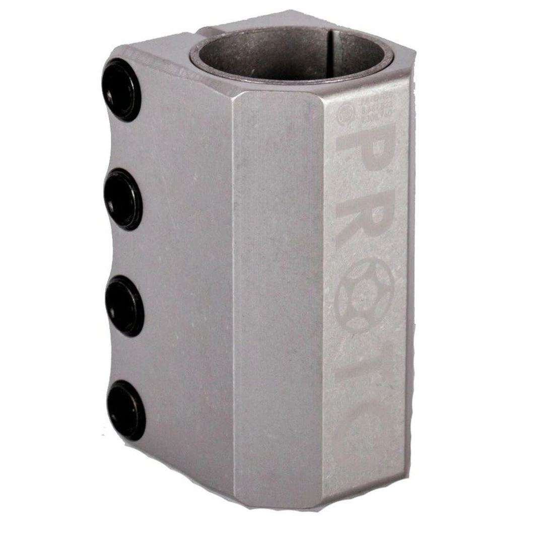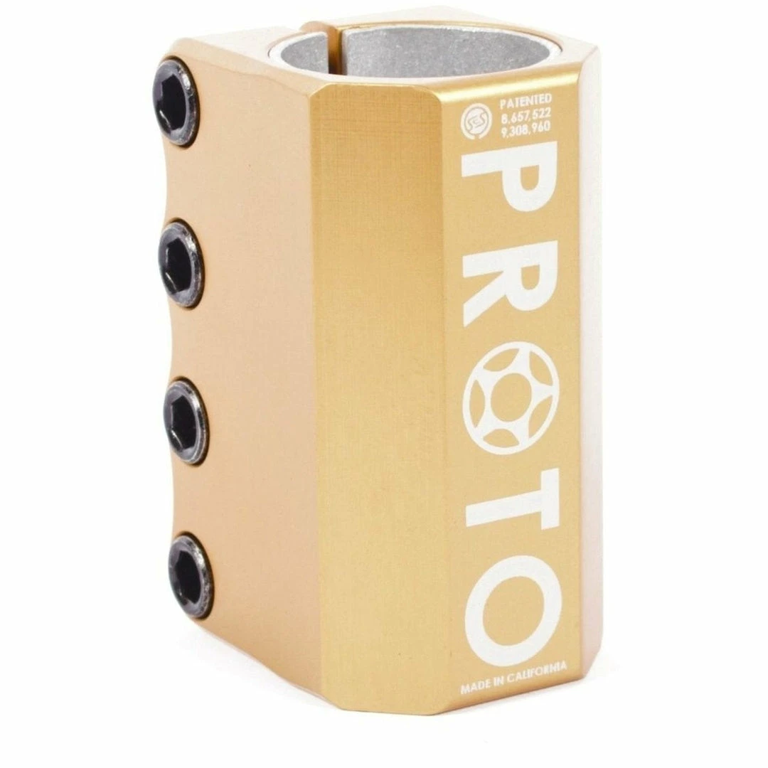 - The Proto Baby SCS is back and better than ever! After a couple year hiatus, the baby SCS is still 3″ but now features M8 compression bolts for more clamping power, a spreader bolt for easier bar installation (no more crushed pennies), and, maybe the best part, is that it now includes a shim so you can ride it with either standard or oversized bars! The Proto SCS is a SCS compression system. The Proto SCS clamp is a full size SCS because it is slightly larger than a baby SCS but provides maximum clamping power. The Proto SCS only works with SCS bars without a slit. While SCS compression is more expensive than other compression systems, it is the most effective compression system you can put on a pro scooter. The Proto SCS clamp includes a shim and works with both oversized and standard outer diameter PRO SCOOTER BARS without a slit. The Proto Baby SCS includes M8 bolts for maximum clamping power. M8 bolts are much less likely to strip than M6 bolts. It is a good practice with any compression bolt to tighten each bolt 1/2 turn at a time, one bolt at a time, until all bolts are completely tight. The Proto SCS works with the SCS compression ONLY.