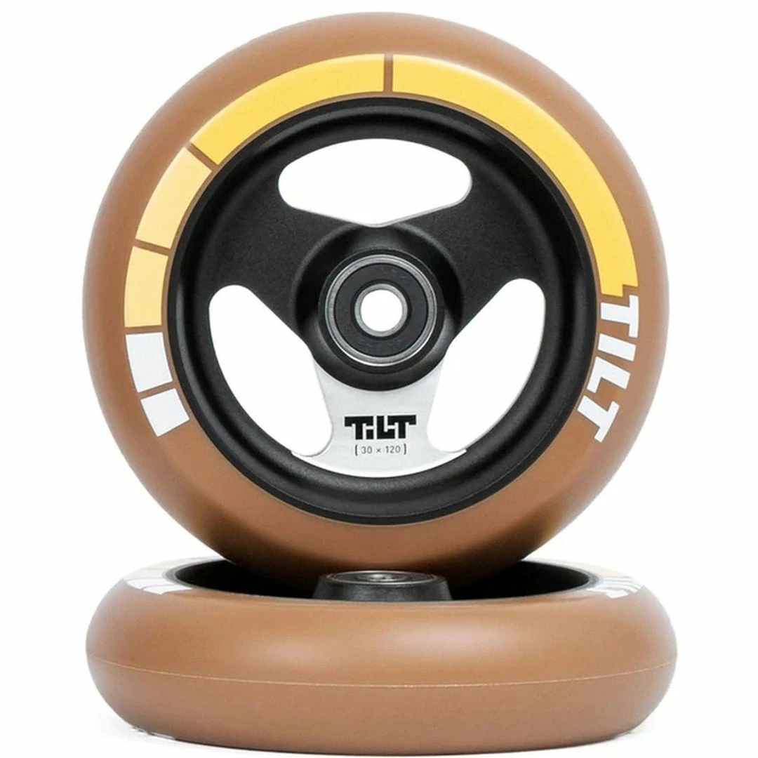 Tilt Stage 1 Race Wheels are 88A PU, which means that Tilt intended them to be ridden on the street because they are harder and more durable than 86A wheels. Tilt Scooter Wheels are 24mm,30mm wide at the core and should be used with 24mm,30mm wheels spacers. The PU width is 24mm,30mm. Most PRO SCOOTER FORKS and decks were designed to handle a 24mm wheel core. Tilt Stage 1 Race Wheels have a 110mm,120mm outer diameter, making them perfect for the Tilt Stage 1 Race Wheels come standard with pre-installed bearings.