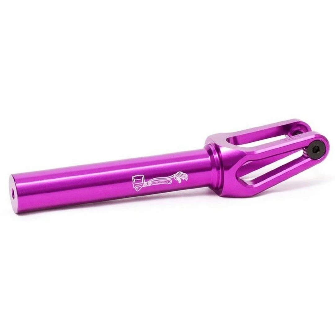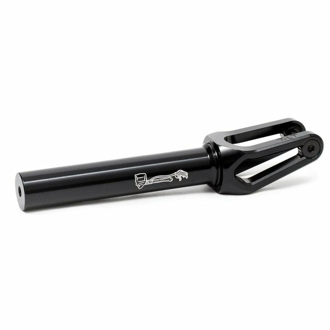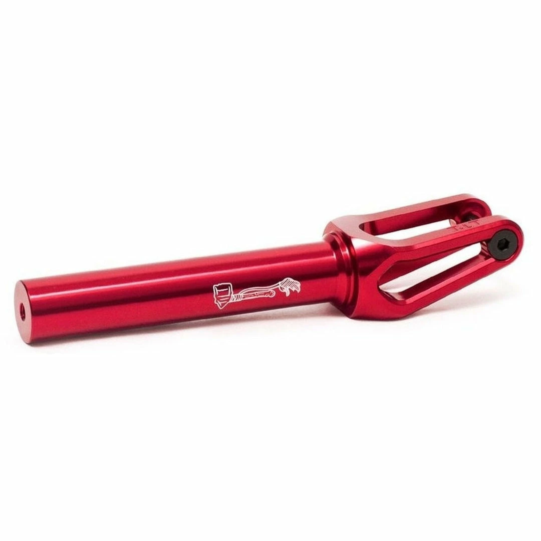 - The Tilt Tomahawk Fork was designed by Tom using 3D design software, and Tilt made it happen. The fork is machined out of billet 6061-T6 aluminum, and a integrated thread removes the need for a star nut. The Tomahawk forks also feature an integrated crown race and includes the F5 axle system. Tilt Tomahawk Forks are a pro scooter fork that work with the following types of compression: SCS,HIC,TCS. When you purchase Tilt Forks, you will need to purchase a compression system (listed previously) that is compatible with your forks, as well as scooter bars that are compatible with the selected compression system. Tilt Scooter Forks are durable forks and can be ridden on the street or at the park. The Tilt Tomahawk Scooter Forks are compatible with the following wheel diameters: 100mm,110mm,115mm,120mm. Tomahawk Forks are compatible with wheels with a 24mm core and either a 24mm or 26mm wide PU.
