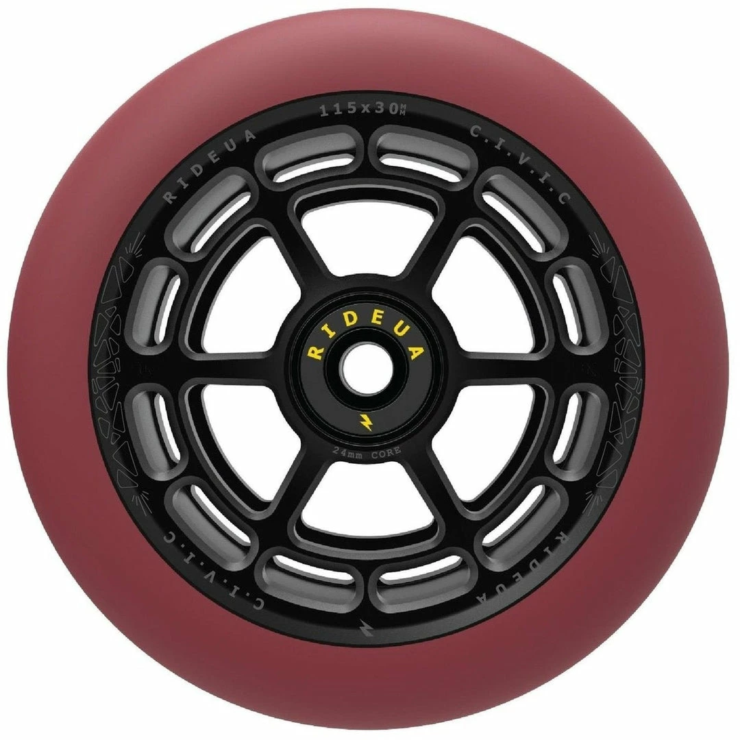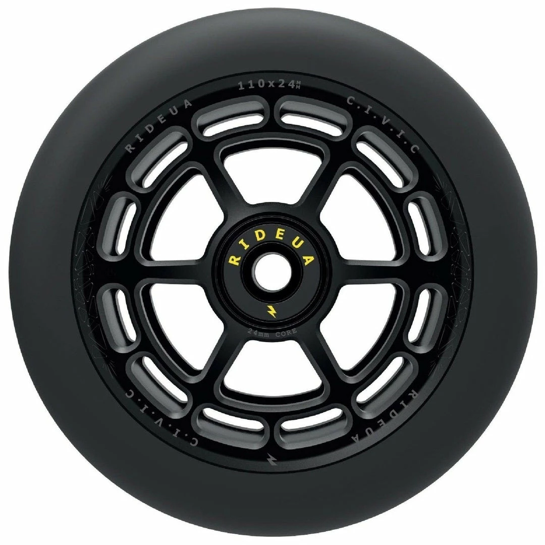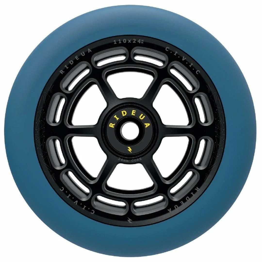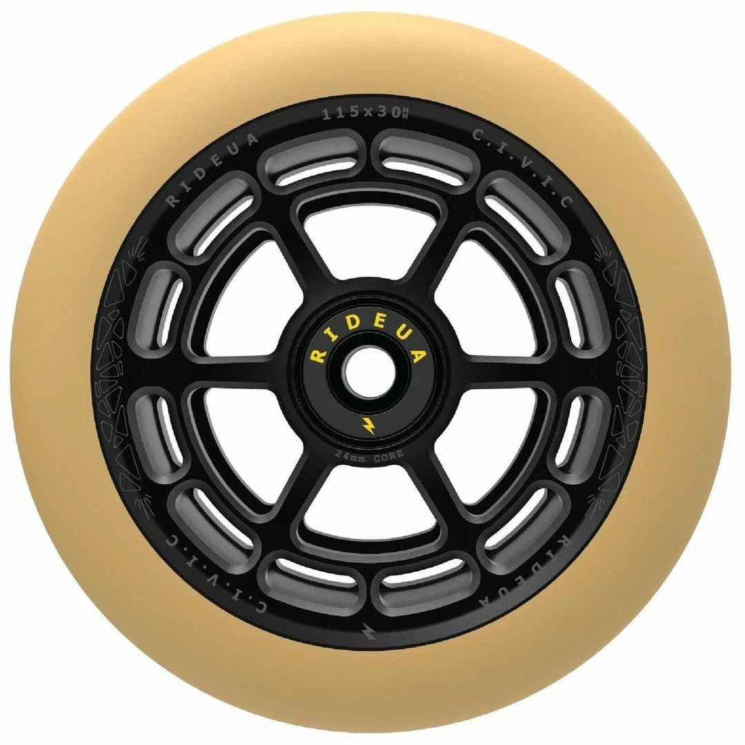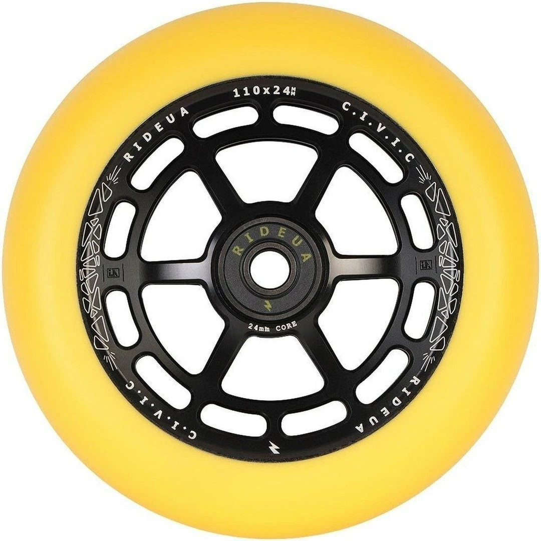 The UrbanArtt Civic wheels solve an interesting problem. Scooter wheels now come in various widths and heights, including the very popular 30mm width. The problem with many 30mm wide wheels is that the core is also 30mm wide, which means it won’t work with conventional 24mm forks and deck spacers. So you have to convert to 30mm fork and deck spacers to use them. Not with the UA Civic wheels. Available in 2 sizes – 110×24 and 125×30, both come with a 24mm core so you can use them with your conventional forks and decks without spacers!